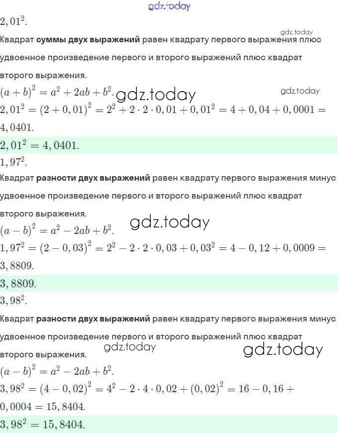 Ответы к Решение. §28. Возведение в квадрат и в куб суммы и разности двух выражений 2 Рабочей тетради по Алгебре для 7 класса Миндюк, Шлыкова Просвещение УМК 2017