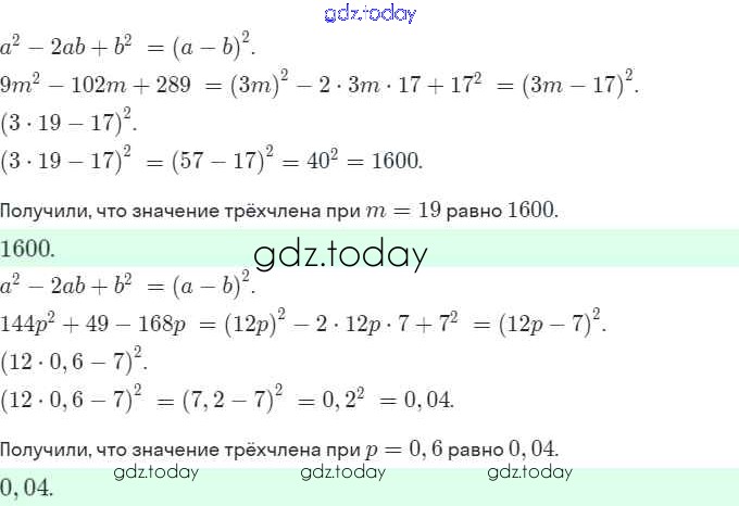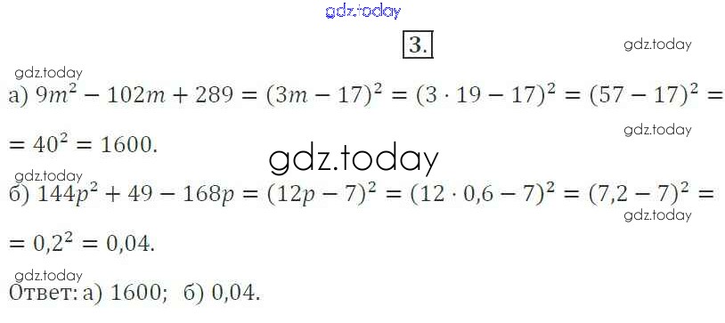 Ответы к Решение. §29. Разложение на множители с помощью формул квадрата суммы и квадрата разности 3 Рабочей тетради по Алгебре для 7 класса Миндюк, Шлыкова Просвещение УМК 2017