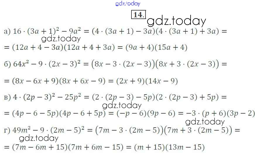 Ответы к Решение. §31. Разложение разности квадратов на множители 14 Рабочей тетради по Алгебре для 7 класса Миндюк, Шлыкова Просвещение УМК 2017