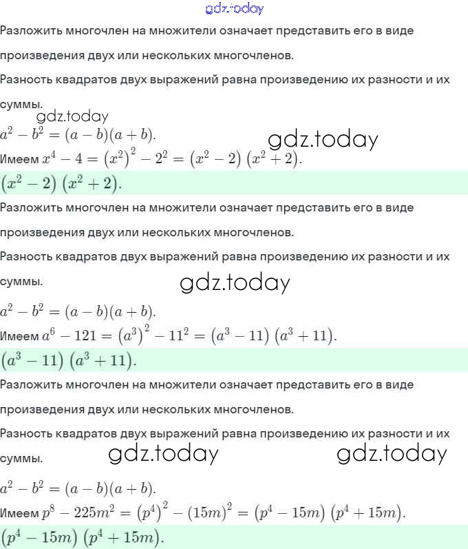 На страницах сайта gdz.today вы найдете учебный и вспомогательный материал, направленный на улучшения знаний школьной программы. ГДЗ - онлайн мир знаний Решение. §31. Разложение разности квадратов на множители 7 Рабочей тетради по Алгебре для 7 класса Миндюк, Шлыкова Просвещение УМК 2017