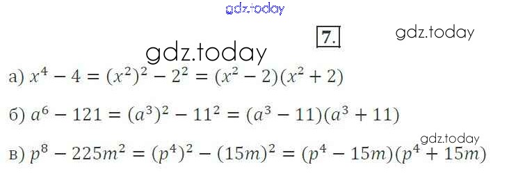 Ответы к Решение. §31. Разложение разности квадратов на множители 7 Рабочей тетради по Алгебре для 7 класса Миндюк, Шлыкова Просвещение УМК 2017