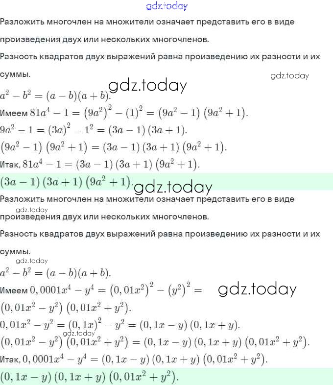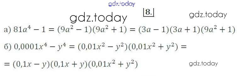 Ответы к Решение. §31. Разложение разности квадратов на множители 8 Рабочей тетради по Алгебре для 7 класса Миндюк, Шлыкова Просвещение УМК 2017