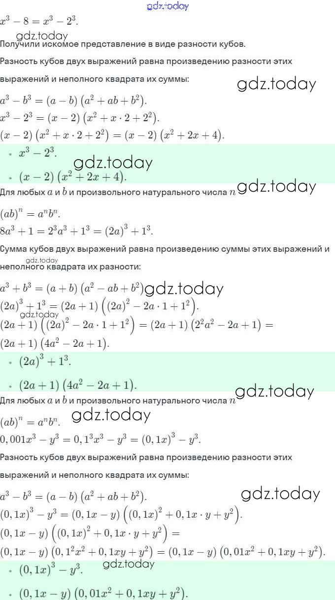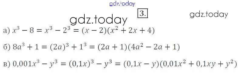 Ответы к Решение. §32. Разложение на множители суммы и разности кубов 3 Рабочей тетради по Алгебре для 7 класса Миндюк, Шлыкова Просвещение УМК 2017