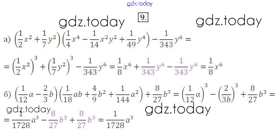 Ответы к Решение. §32. Разложение на множители суммы и разности кубов 9 Рабочей тетради по Алгебре для 7 класса Миндюк, Шлыкова Просвещение УМК 2017