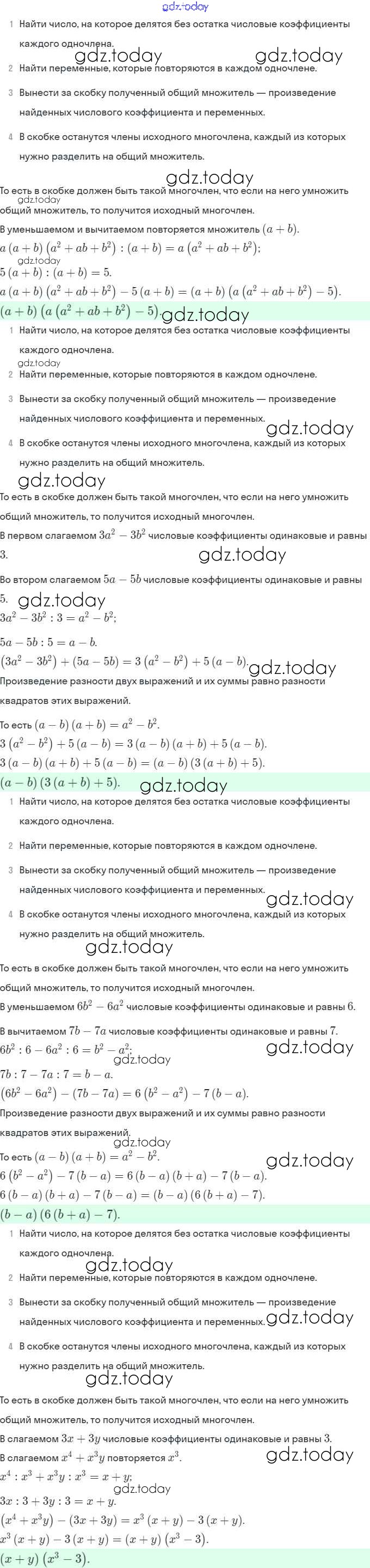 Ответы к Решение. §34. Применение различных способов для разложения на множители 1 Рабочей тетради по Алгебре для 7 класса Миндюк, Шлыкова Просвещение УМК 2017