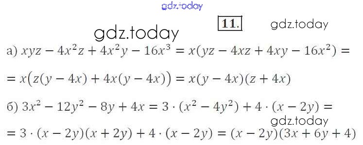 Ответы к Решение. §34. Применение различных способов для разложения на множители 11 Рабочей тетради по Алгебре для 7 класса Миндюк, Шлыкова Просвещение УМК 2017