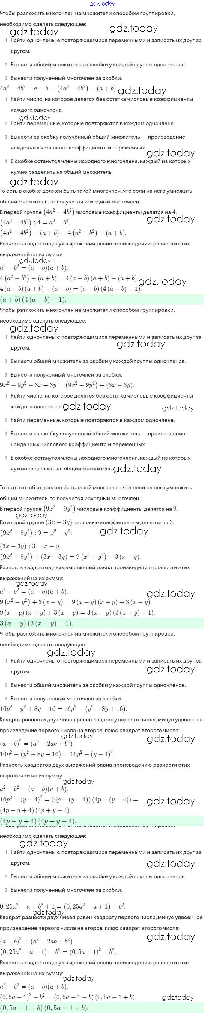 Ответы к Решение. §34. Применение различных способов для разложения на множители 8 Рабочей тетради по Алгебре для 7 класса Миндюк, Шлыкова Просвещение УМК 2017