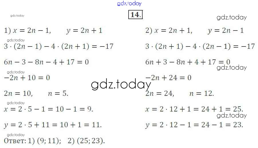 Ответы к Решение. §35. Линейное уравнение с двумя переменными 14 Рабочей тетради по Алгебре для 7 класса Миндюк, Шлыкова Просвещение УМК 2017