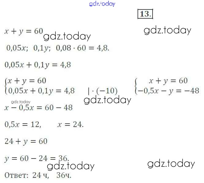 Ответы к Решение. §40. Решение задач с помощью систем уравнений 13 Рабочей тетради по Алгебре для 7 класса Миндюк, Шлыкова Просвещение УМК 2017