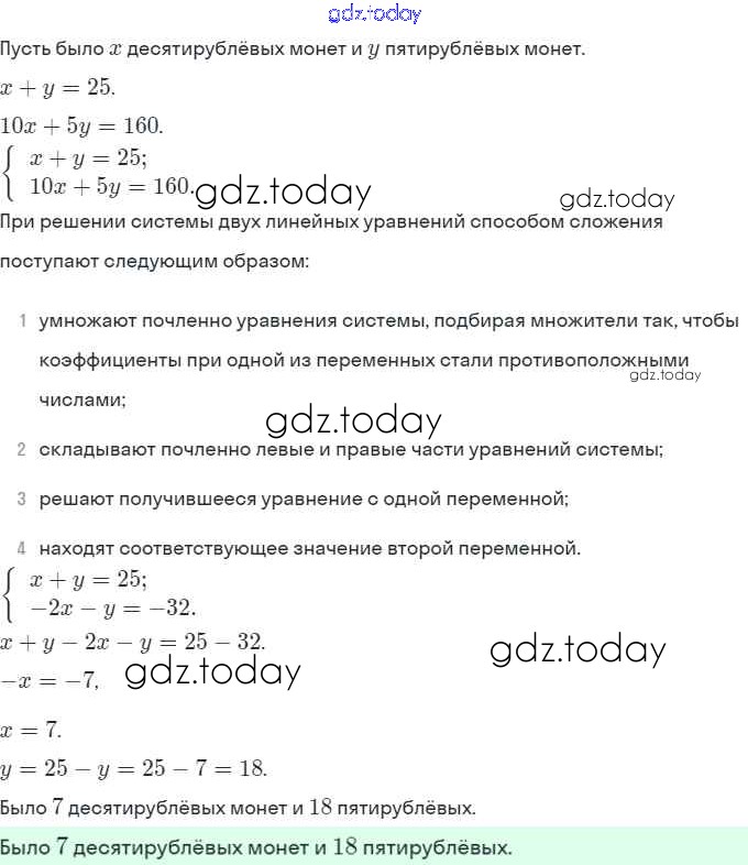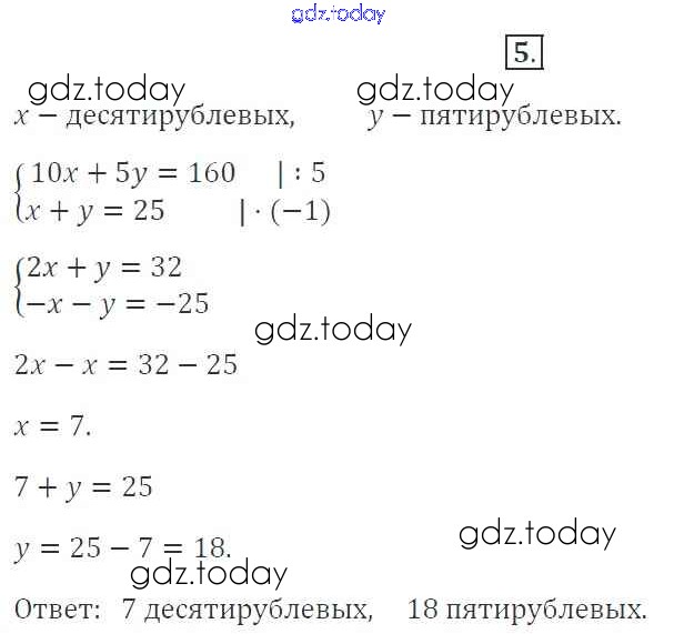 Ответы к Решение. §40. Решение задач с помощью систем уравнений 5 Рабочей тетради по Алгебре для 7 класса Миндюк, Шлыкова Просвещение УМК 2017