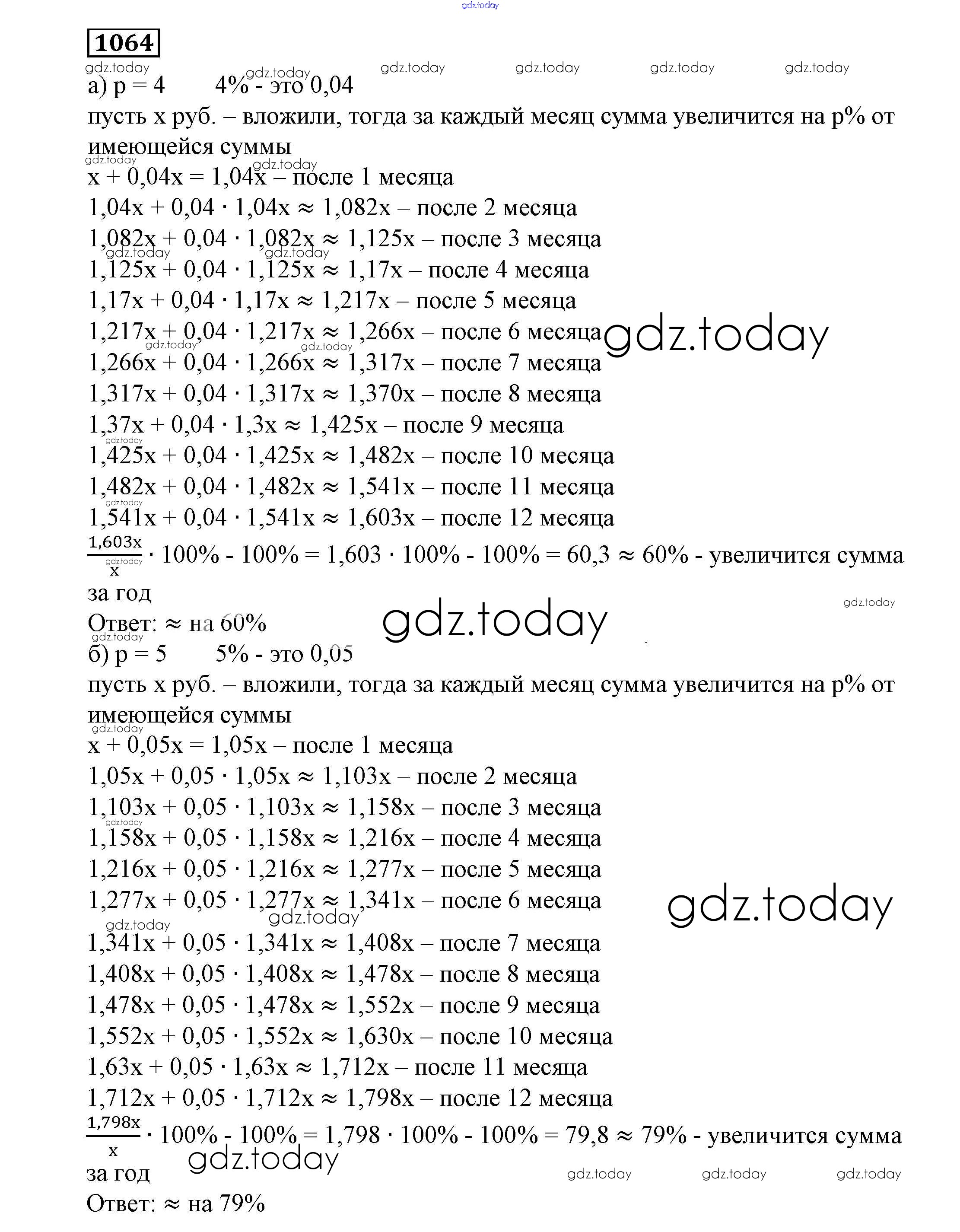 Ответы к Решение к eпражнениям 1064 Учебнику по Алгебре для 7 класса Никольский, Потапов Просвещение МГУ - школе 2013