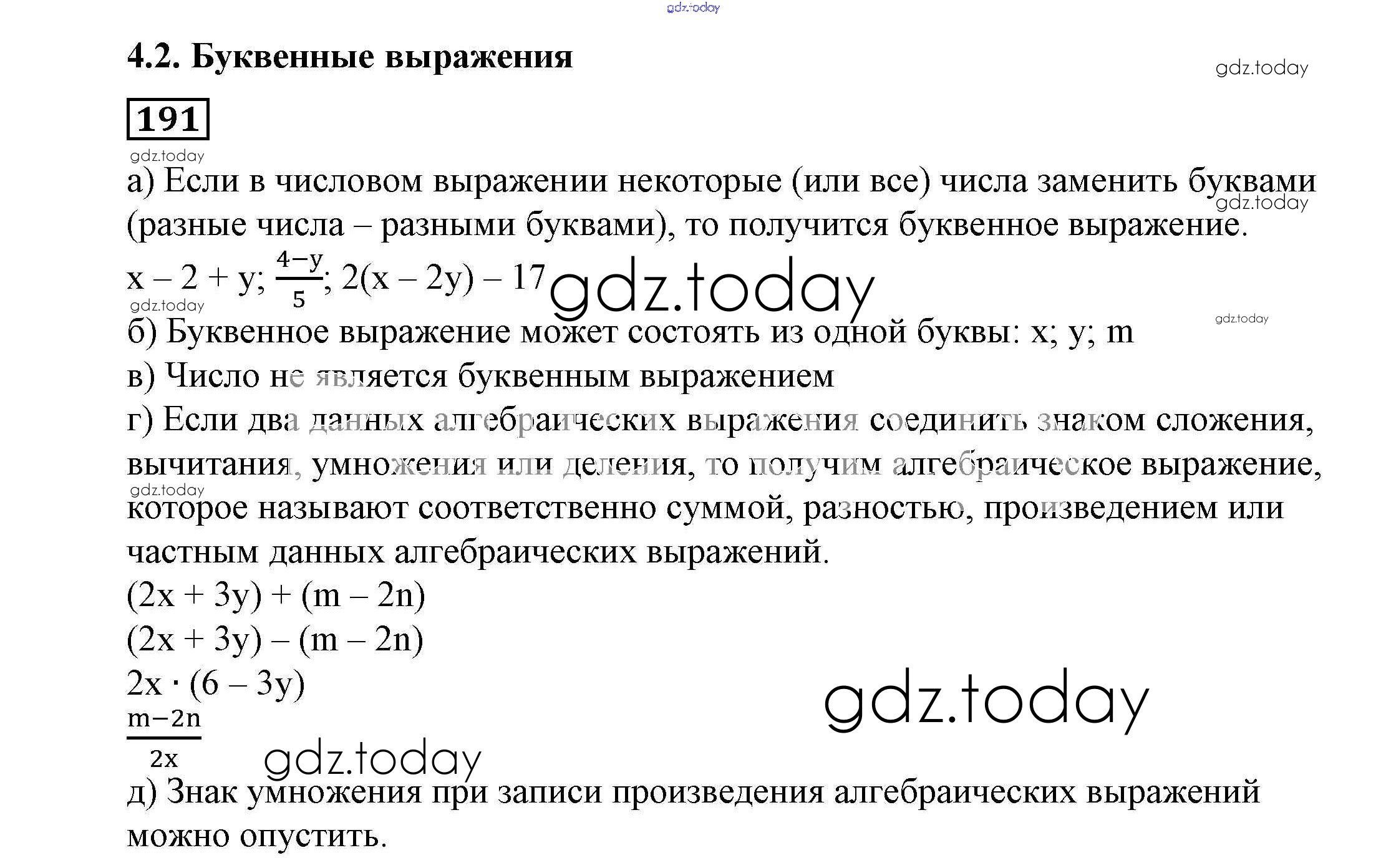 На страницах сайта gdz.today вы найдете учебный и вспомогательный материал, направленный на улучшения знаний школьной программы. ГДЗ - онлайн мир знаний Решение к eпражнениям 191 Учебнику по Алгебре для 7 класса Никольский, Потапов Просвещение МГУ - школе 2013