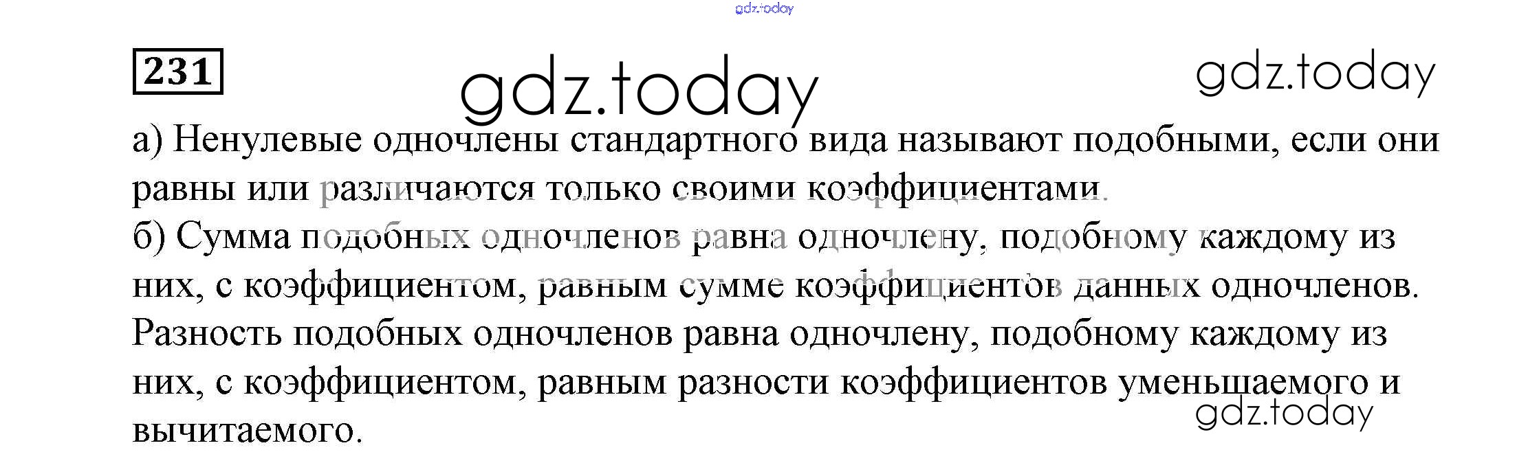На страницах сайта gdz.today вы найдете учебный и вспомогательный материал, направленный на улучшения знаний школьной программы. ГДЗ - онлайн мир знаний Решение к eпражнениям 231 Учебнику по Алгебре для 7 класса Никольский, Потапов Просвещение МГУ - школе 2013