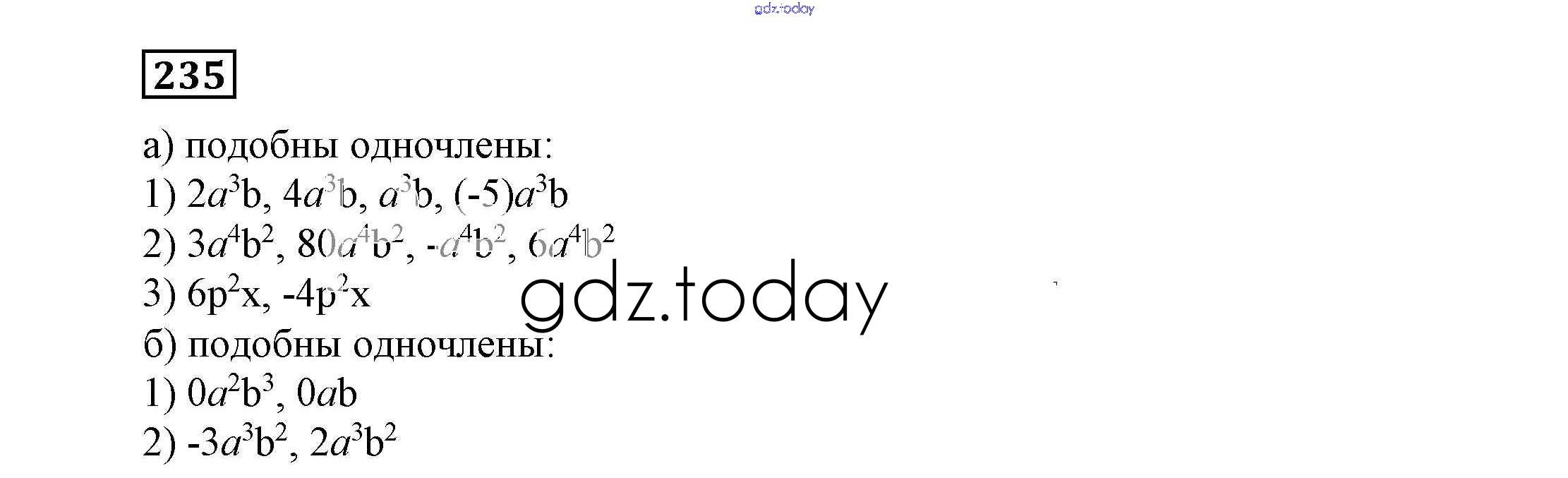 На страницах сайта gdz.today вы найдете учебный и вспомогательный материал, направленный на улучшения знаний школьной программы. ГДЗ - онлайн мир знаний Решение к eпражнениям 235 Учебнику по Алгебре для 7 класса Никольский, Потапов Просвещение МГУ - школе 2013