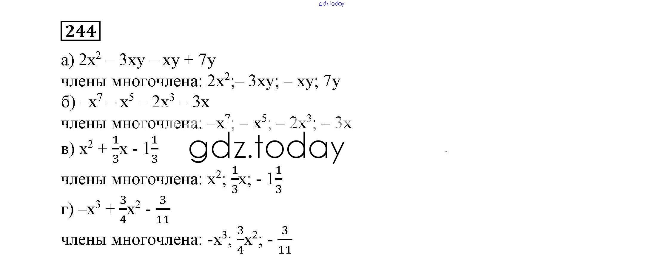 На страницах сайта gdz.today вы найдете учебный и вспомогательный материал, направленный на улучшения знаний школьной программы. ГДЗ - онлайн мир знаний Решение к eпражнениям 244 Учебнику по Алгебре для 7 класса Никольский, Потапов Просвещение МГУ - школе 2013