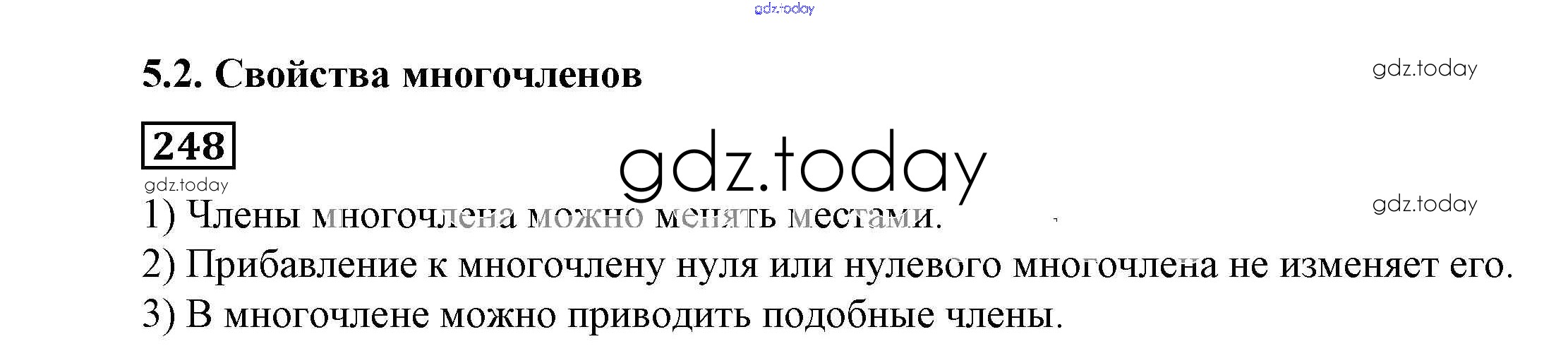 На страницах сайта gdz.today вы найдете учебный и вспомогательный материал, направленный на улучшения знаний школьной программы. ГДЗ - онлайн мир знаний Решение к eпражнениям 248 Учебнику по Алгебре для 7 класса Никольский, Потапов Просвещение МГУ - школе 2013