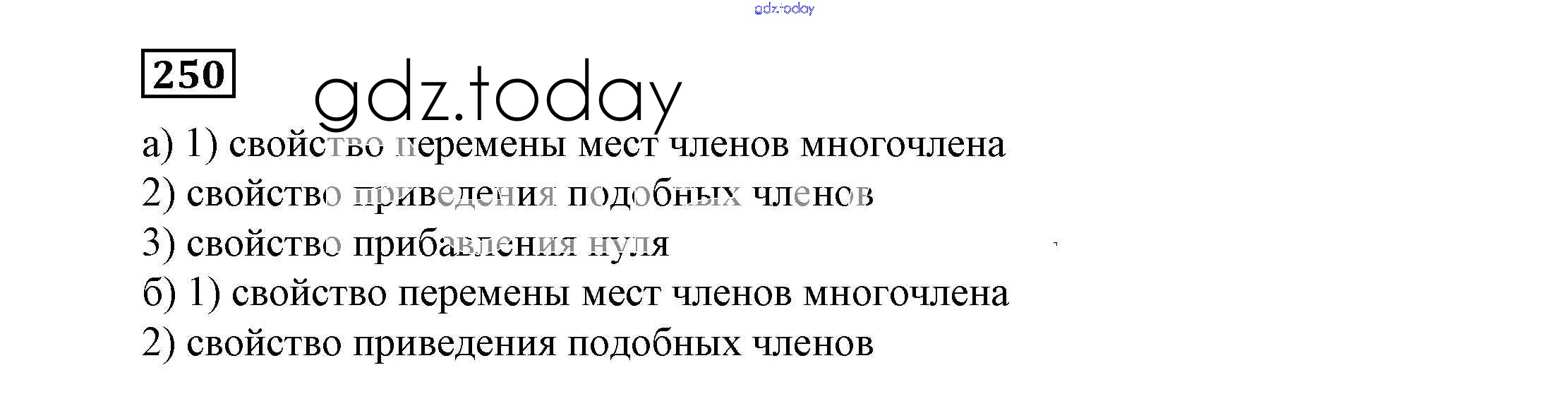 На страницах сайта gdz.today вы найдете учебный и вспомогательный материал, направленный на улучшения знаний школьной программы. ГДЗ - онлайн мир знаний Решение к eпражнениям 250 Учебнику по Алгебре для 7 класса Никольский, Потапов Просвещение МГУ - школе 2013