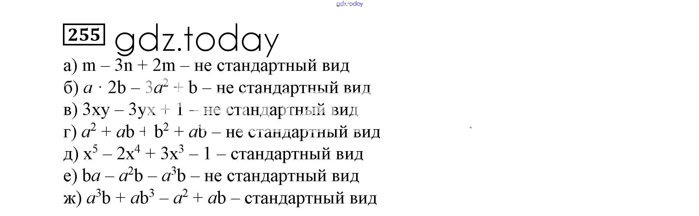 На страницах сайта gdz.today вы найдете учебный и вспомогательный материал, направленный на улучшения знаний школьной программы. ГДЗ - онлайн мир знаний Решение к eпражнениям 255 Учебнику по Алгебре для 7 класса Никольский, Потапов Просвещение МГУ - школе 2013