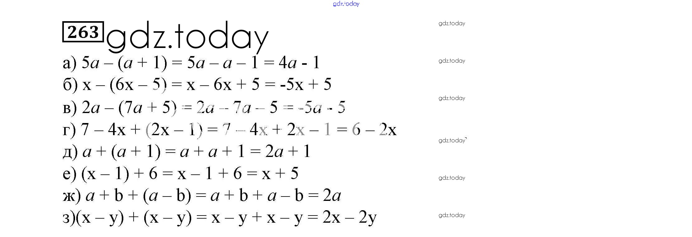 На страницах сайта gdz.today вы найдете учебный и вспомогательный материал, направленный на улучшения знаний школьной программы. ГДЗ - онлайн мир знаний Решение к eпражнениям 263 Учебнику по Алгебре для 7 класса Никольский, Потапов Просвещение МГУ - школе 2013