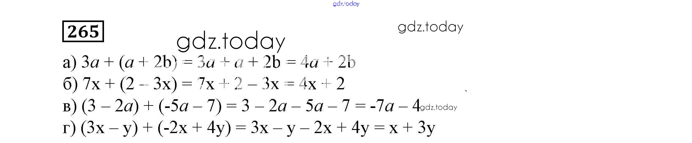 На страницах сайта gdz.today вы найдете учебный и вспомогательный материал, направленный на улучшения знаний школьной программы. ГДЗ - онлайн мир знаний Решение к eпражнениям 265 Учебнику по Алгебре для 7 класса Никольский, Потапов Просвещение МГУ - школе 2013