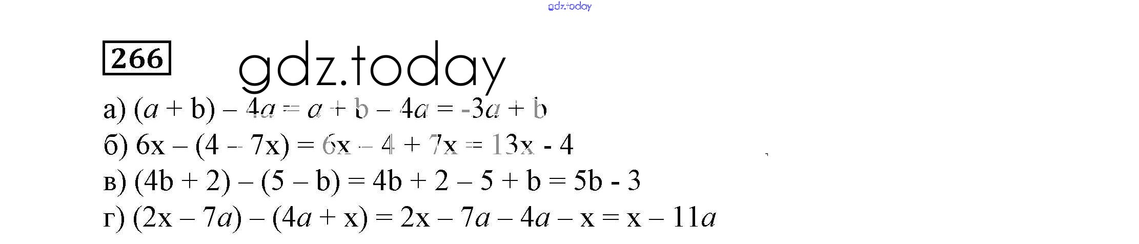 На страницах сайта gdz.today вы найдете учебный и вспомогательный материал, направленный на улучшения знаний школьной программы. ГДЗ - онлайн мир знаний Решение к eпражнениям 266 Учебнику по Алгебре для 7 класса Никольский, Потапов Просвещение МГУ - школе 2013