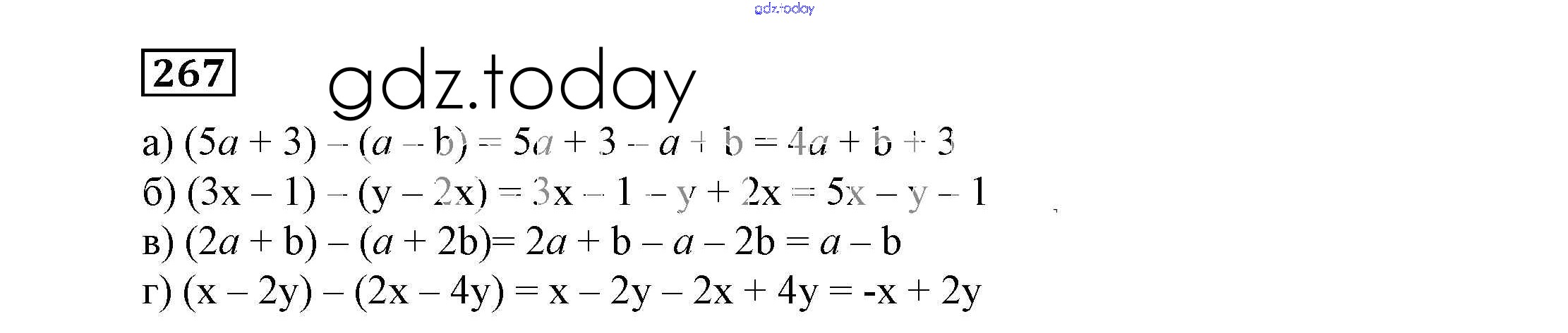 На страницах сайта gdz.today вы найдете учебный и вспомогательный материал, направленный на улучшения знаний школьной программы. ГДЗ - онлайн мир знаний Решение к eпражнениям 267 Учебнику по Алгебре для 7 класса Никольский, Потапов Просвещение МГУ - школе 2013