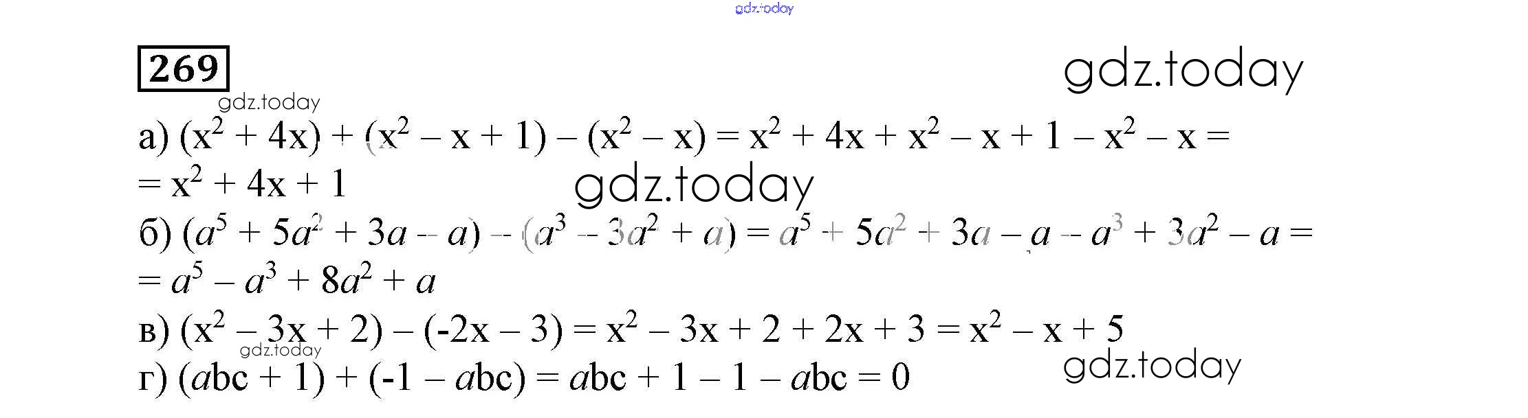 На страницах сайта gdz.today вы найдете учебный и вспомогательный материал, направленный на улучшения знаний школьной программы. ГДЗ - онлайн мир знаний Решение к eпражнениям 269 Учебнику по Алгебре для 7 класса Никольский, Потапов Просвещение МГУ - школе 2013