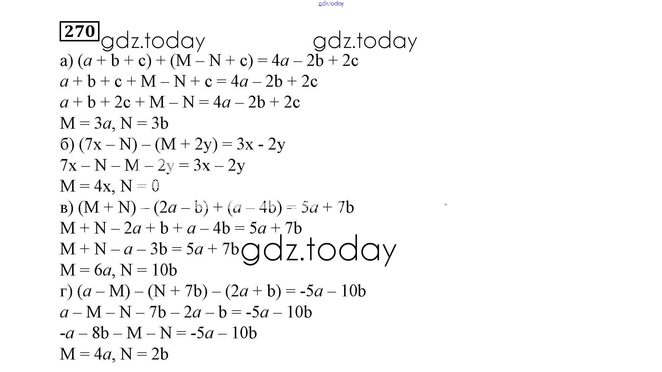 На страницах сайта gdz.today вы найдете учебный и вспомогательный материал, направленный на улучшения знаний школьной программы. ГДЗ - онлайн мир знаний Решение к eпражнениям 270 Учебнику по Алгебре для 7 класса Никольский, Потапов Просвещение МГУ - школе 2013