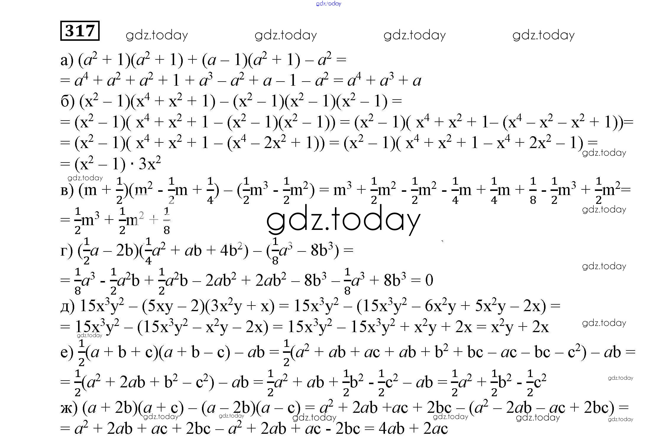 На страницах сайта gdz.today вы найдете учебный и вспомогательный материал, направленный на улучшения знаний школьной программы. ГДЗ - онлайн мир знаний Решение к eпражнениям 317 Учебнику по Алгебре для 7 класса Никольский, Потапов Просвещение МГУ - школе 2013