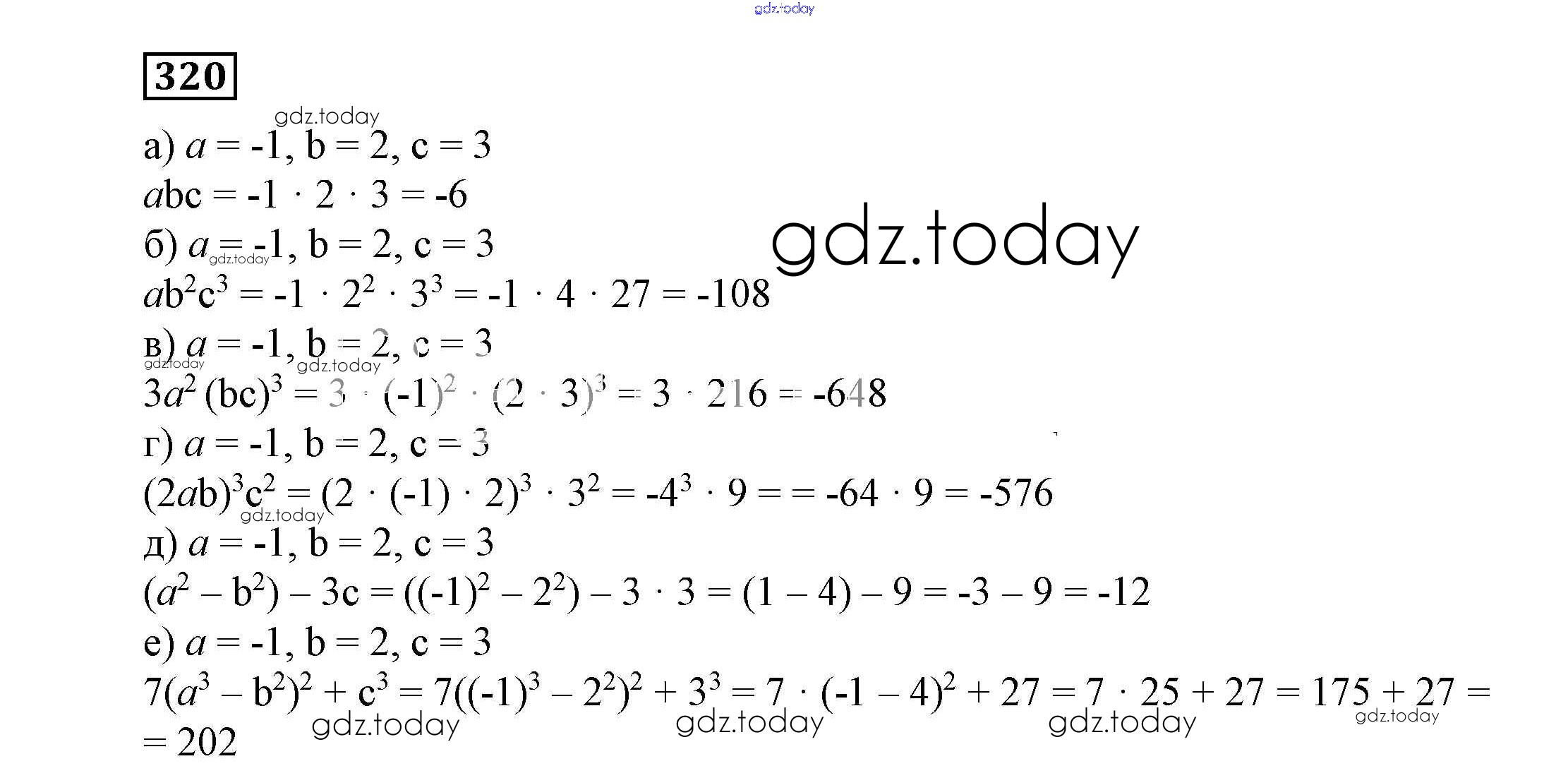 На страницах сайта gdz.today вы найдете учебный и вспомогательный материал, направленный на улучшения знаний школьной программы. ГДЗ - онлайн мир знаний Решение к eпражнениям 320 Учебнику по Алгебре для 7 класса Никольский, Потапов Просвещение МГУ - школе 2013