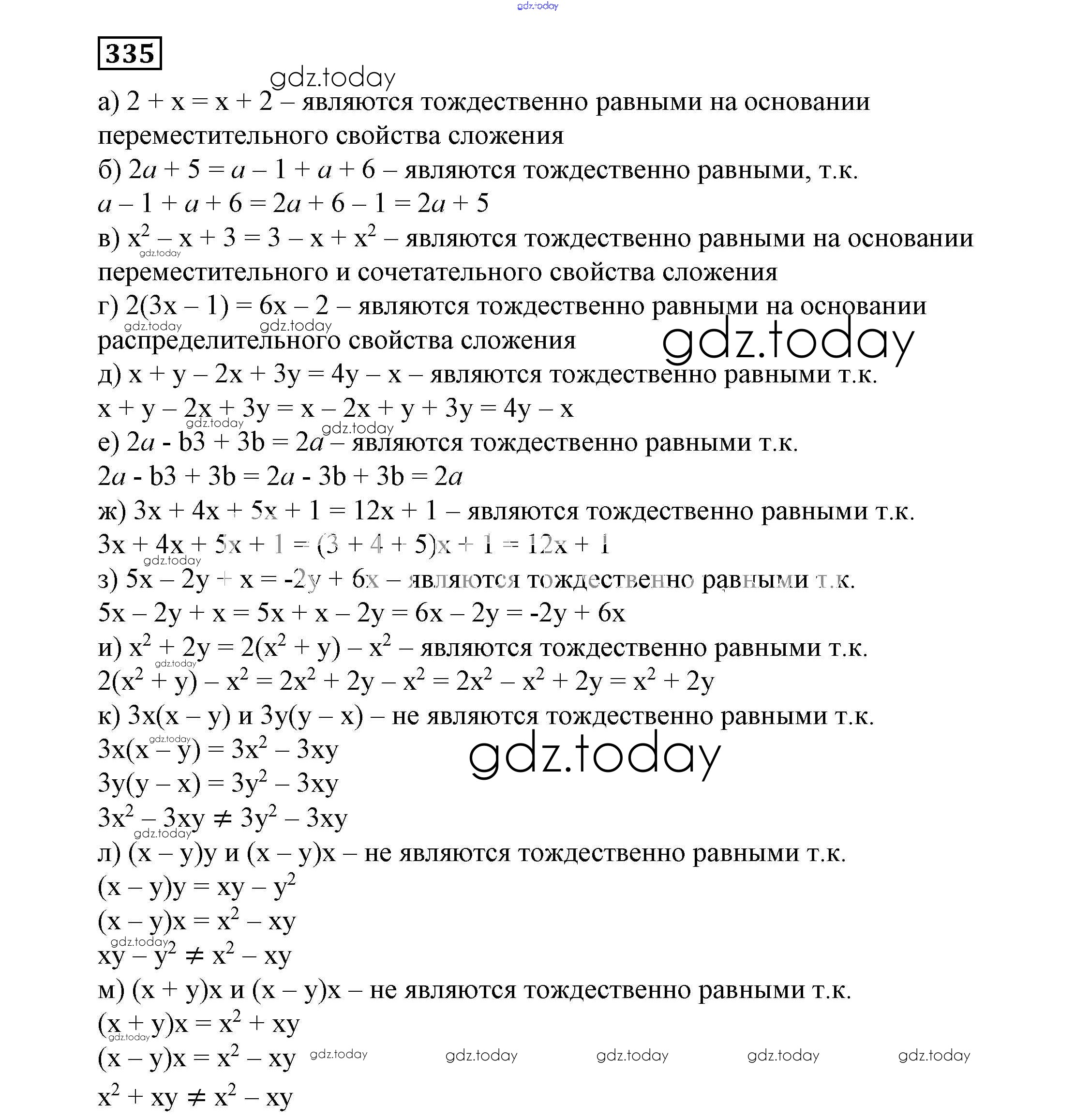 На страницах сайта gdz.today вы найдете учебный и вспомогательный материал, направленный на улучшения знаний школьной программы. ГДЗ - онлайн мир знаний Решение к eпражнениям 335 Учебнику по Алгебре для 7 класса Никольский, Потапов Просвещение МГУ - школе 2013