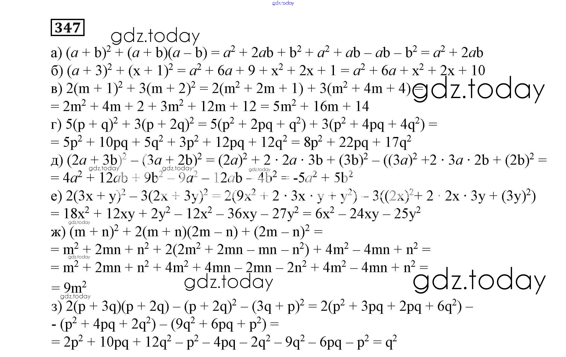 На страницах сайта gdz.today вы найдете учебный и вспомогательный материал, направленный на улучшения знаний школьной программы. ГДЗ - онлайн мир знаний Решение к eпражнениям 347 Учебнику по Алгебре для 7 класса Никольский, Потапов Просвещение МГУ - школе 2013