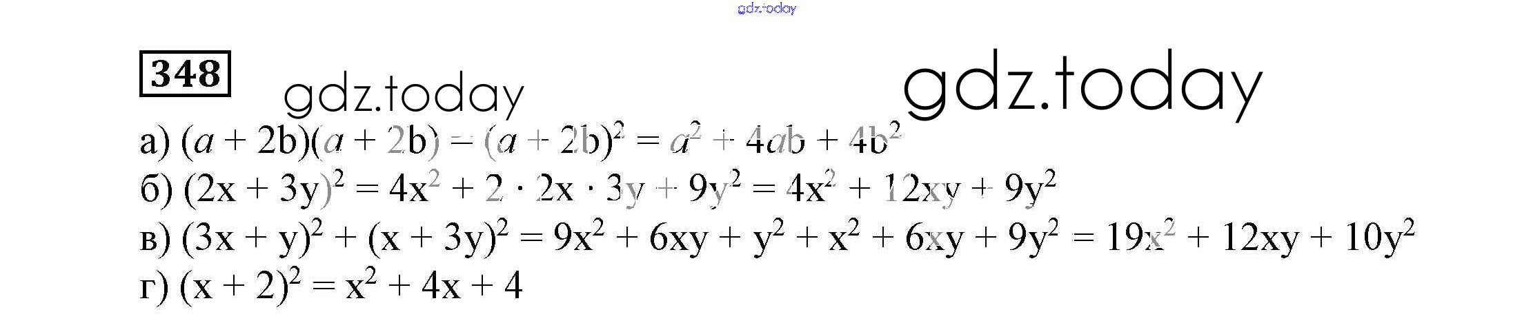 На страницах сайта gdz.today вы найдете учебный и вспомогательный материал, направленный на улучшения знаний школьной программы. ГДЗ - онлайн мир знаний Решение к eпражнениям 348 Учебнику по Алгебре для 7 класса Никольский, Потапов Просвещение МГУ - школе 2013