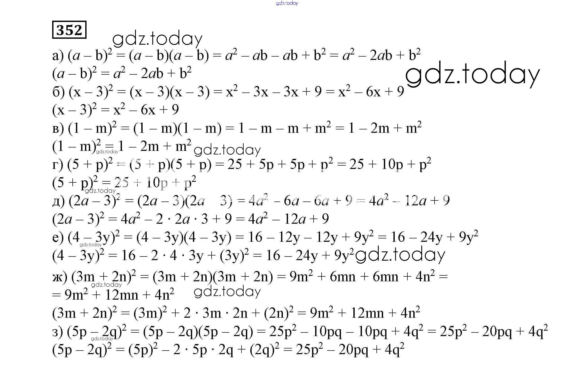 На страницах сайта gdz.today вы найдете учебный и вспомогательный материал, направленный на улучшения знаний школьной программы. ГДЗ - онлайн мир знаний Решение к eпражнениям 352 Учебнику по Алгебре для 7 класса Никольский, Потапов Просвещение МГУ - школе 2013