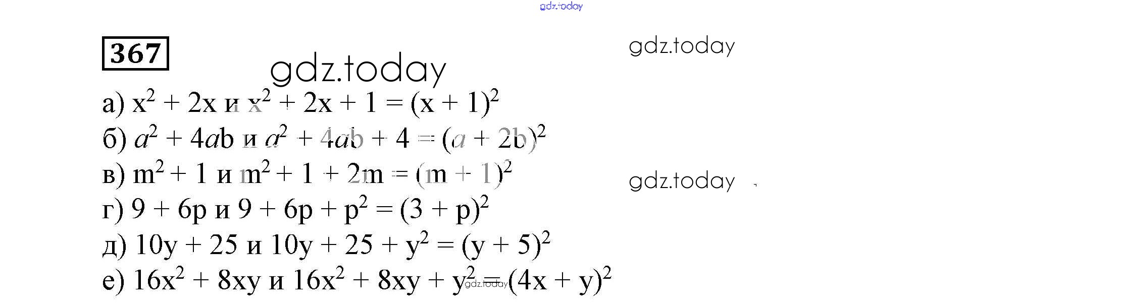 На страницах сайта gdz.today вы найдете учебный и вспомогательный материал, направленный на улучшения знаний школьной программы. ГДЗ - онлайн мир знаний Решение к eпражнениям 367 Учебнику по Алгебре для 7 класса Никольский, Потапов Просвещение МГУ - школе 2013