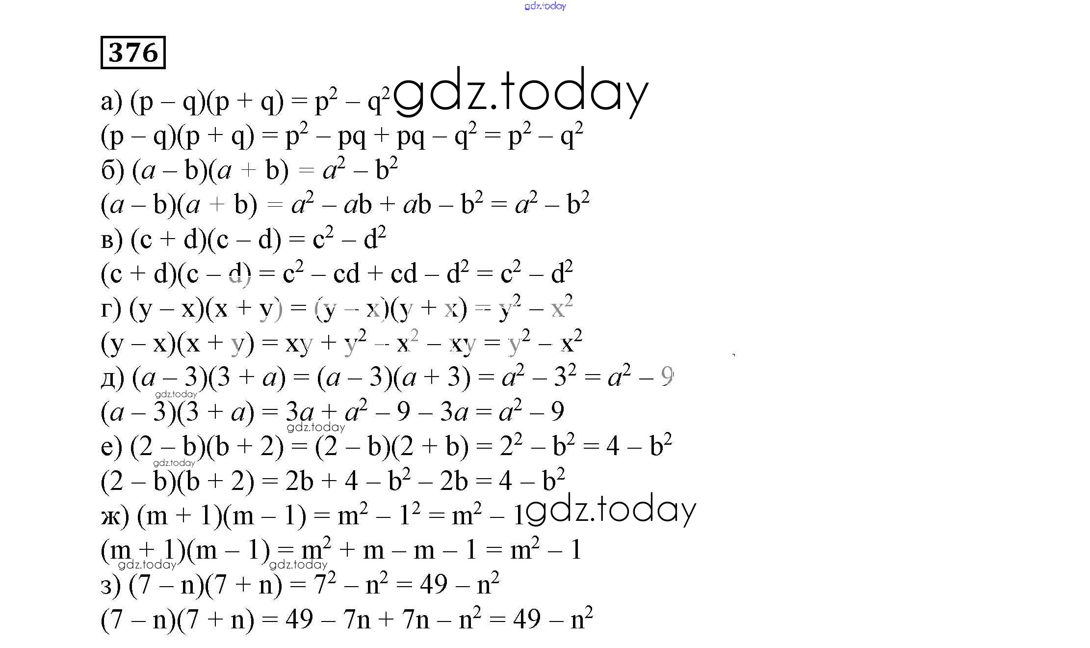 На страницах сайта gdz.today вы найдете учебный и вспомогательный материал, направленный на улучшения знаний школьной программы. ГДЗ - онлайн мир знаний Решение к eпражнениям 376 Учебнику по Алгебре для 7 класса Никольский, Потапов Просвещение МГУ - школе 2013