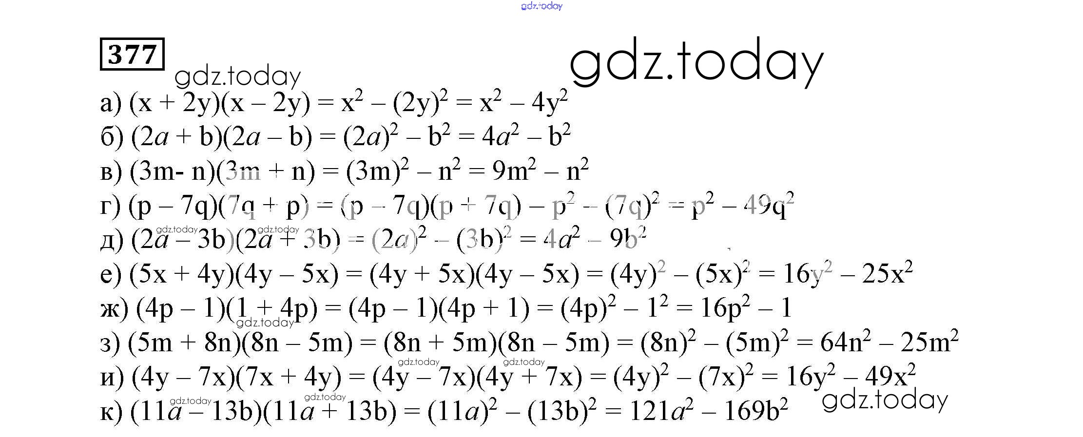 На страницах сайта gdz.today вы найдете учебный и вспомогательный материал, направленный на улучшения знаний школьной программы. ГДЗ - онлайн мир знаний Решение к eпражнениям 377 Учебнику по Алгебре для 7 класса Никольский, Потапов Просвещение МГУ - школе 2013