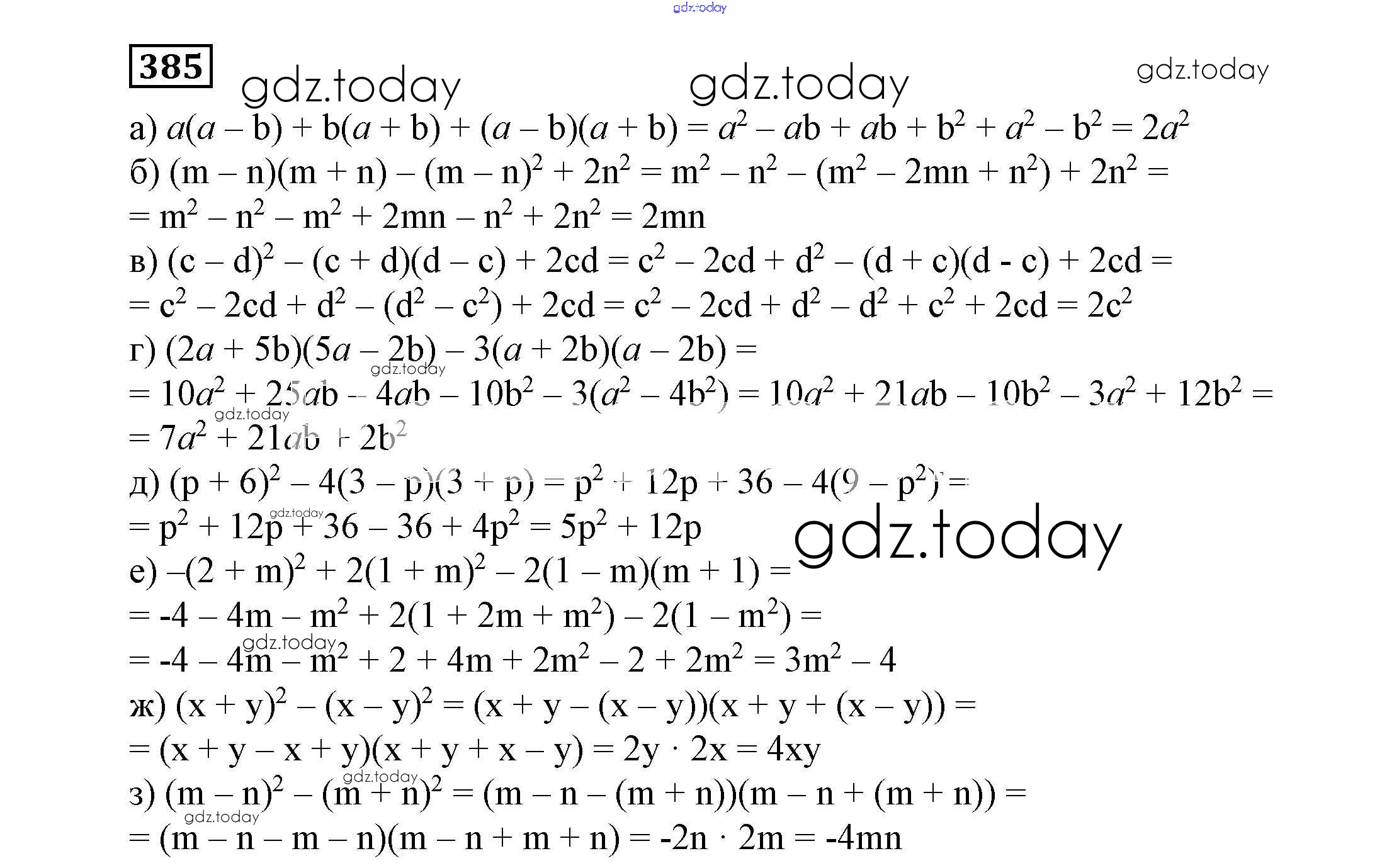 На страницах сайта gdz.today вы найдете учебный и вспомогательный материал, направленный на улучшения знаний школьной программы. ГДЗ - онлайн мир знаний Решение к eпражнениям 385 Учебнику по Алгебре для 7 класса Никольский, Потапов Просвещение МГУ - школе 2013