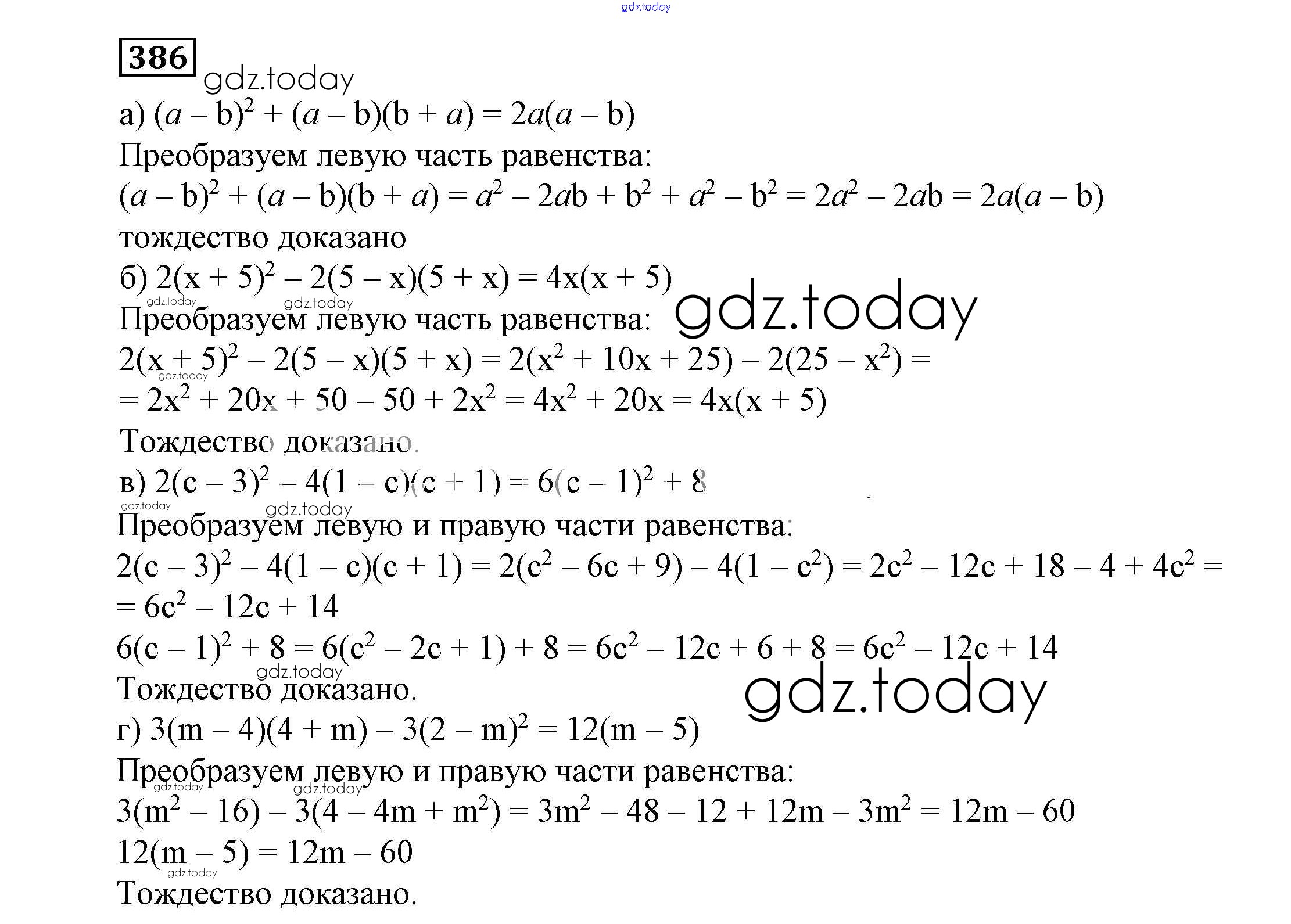 На страницах сайта gdz.today вы найдете учебный и вспомогательный материал, направленный на улучшения знаний школьной программы. ГДЗ - онлайн мир знаний Решение к eпражнениям 386 Учебнику по Алгебре для 7 класса Никольский, Потапов Просвещение МГУ - школе 2013