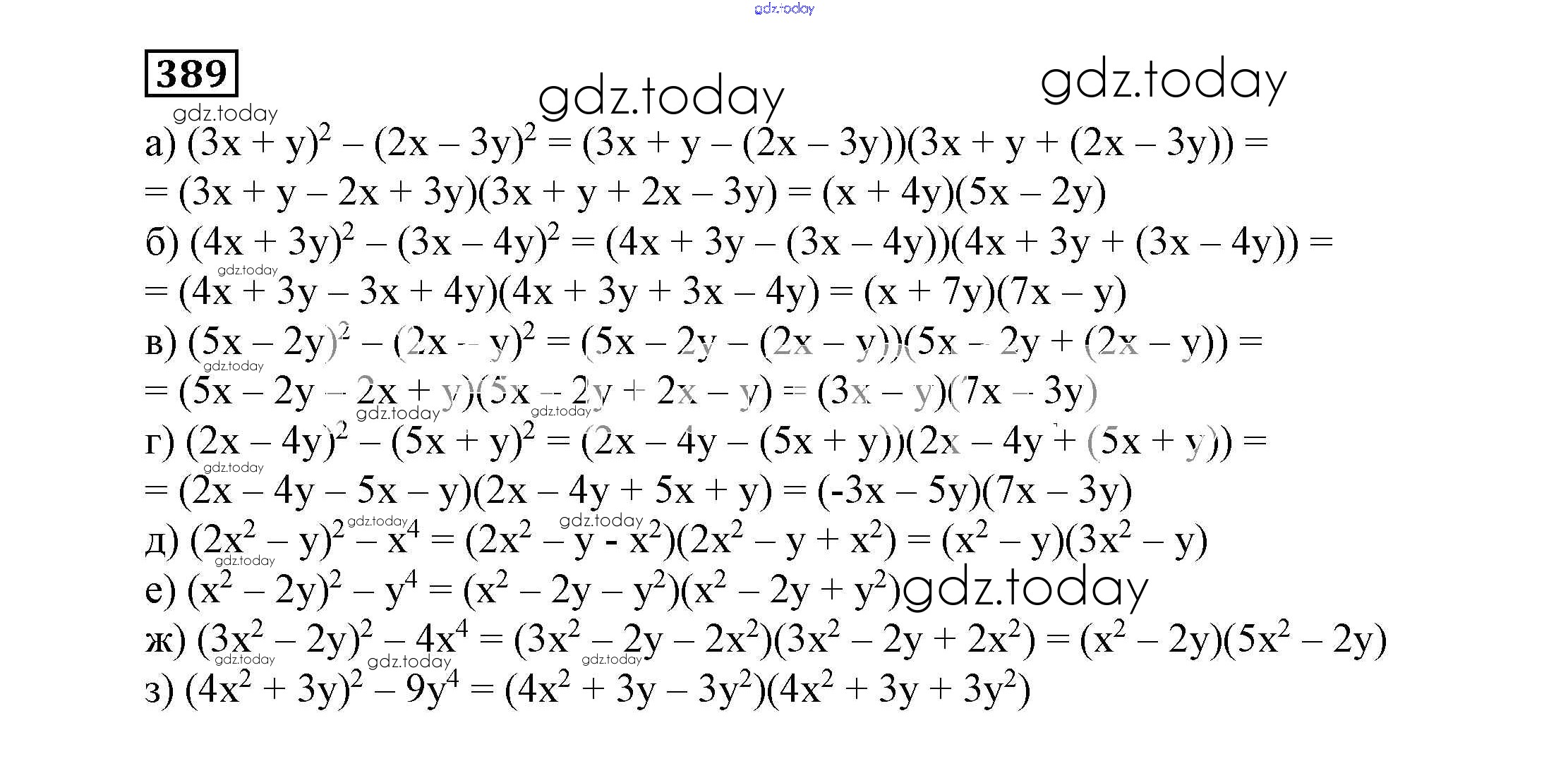 На страницах сайта gdz.today вы найдете учебный и вспомогательный материал, направленный на улучшения знаний школьной программы. ГДЗ - онлайн мир знаний Решение к eпражнениям 389 Учебнику по Алгебре для 7 класса Никольский, Потапов Просвещение МГУ - школе 2013