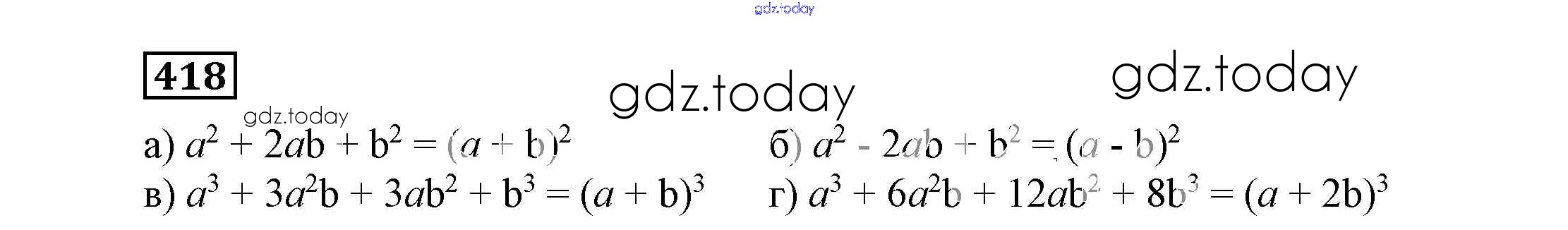 На страницах сайта gdz.today вы найдете учебный и вспомогательный материал, направленный на улучшения знаний школьной программы. ГДЗ - онлайн мир знаний Решение к eпражнениям 418 Учебнику по Алгебре для 7 класса Никольский, Потапов Просвещение МГУ - школе 2013