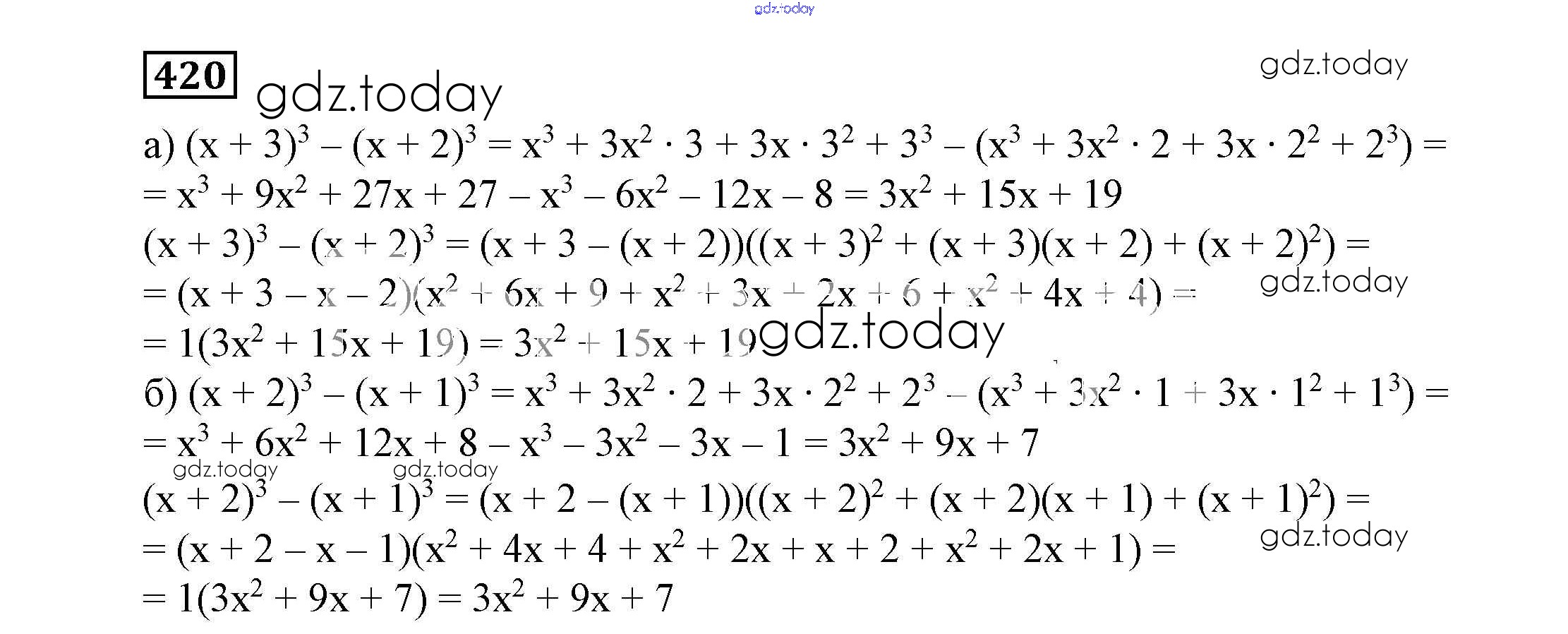На страницах сайта gdz.today вы найдете учебный и вспомогательный материал, направленный на улучшения знаний школьной программы. ГДЗ - онлайн мир знаний Решение к eпражнениям 420 Учебнику по Алгебре для 7 класса Никольский, Потапов Просвещение МГУ - школе 2013