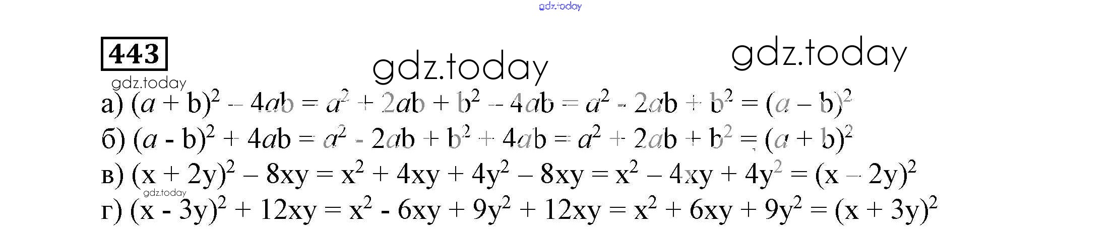 На страницах сайта gdz.today вы найдете учебный и вспомогательный материал, направленный на улучшения знаний школьной программы. ГДЗ - онлайн мир знаний Решение к eпражнениям 443 Учебнику по Алгебре для 7 класса Никольский, Потапов Просвещение МГУ - школе 2013