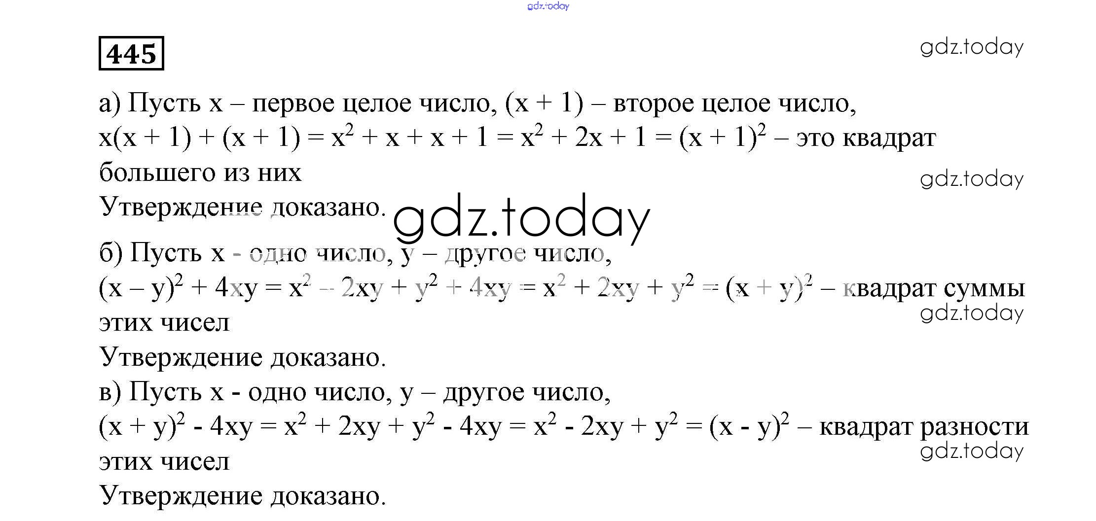 На страницах сайта gdz.today вы найдете учебный и вспомогательный материал, направленный на улучшения знаний школьной программы. ГДЗ - онлайн мир знаний Решение к eпражнениям 445 Учебнику по Алгебре для 7 класса Никольский, Потапов Просвещение МГУ - школе 2013