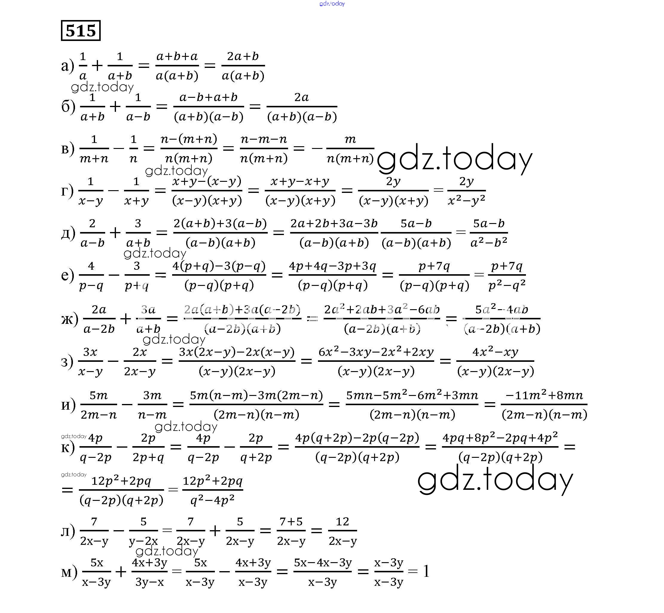 На страницах сайта gdz.today вы найдете учебный и вспомогательный материал, направленный на улучшения знаний школьной программы. ГДЗ - онлайн мир знаний Решение к eпражнениям 515 Учебнику по Алгебре для 7 класса Никольский, Потапов Просвещение МГУ - школе 2013