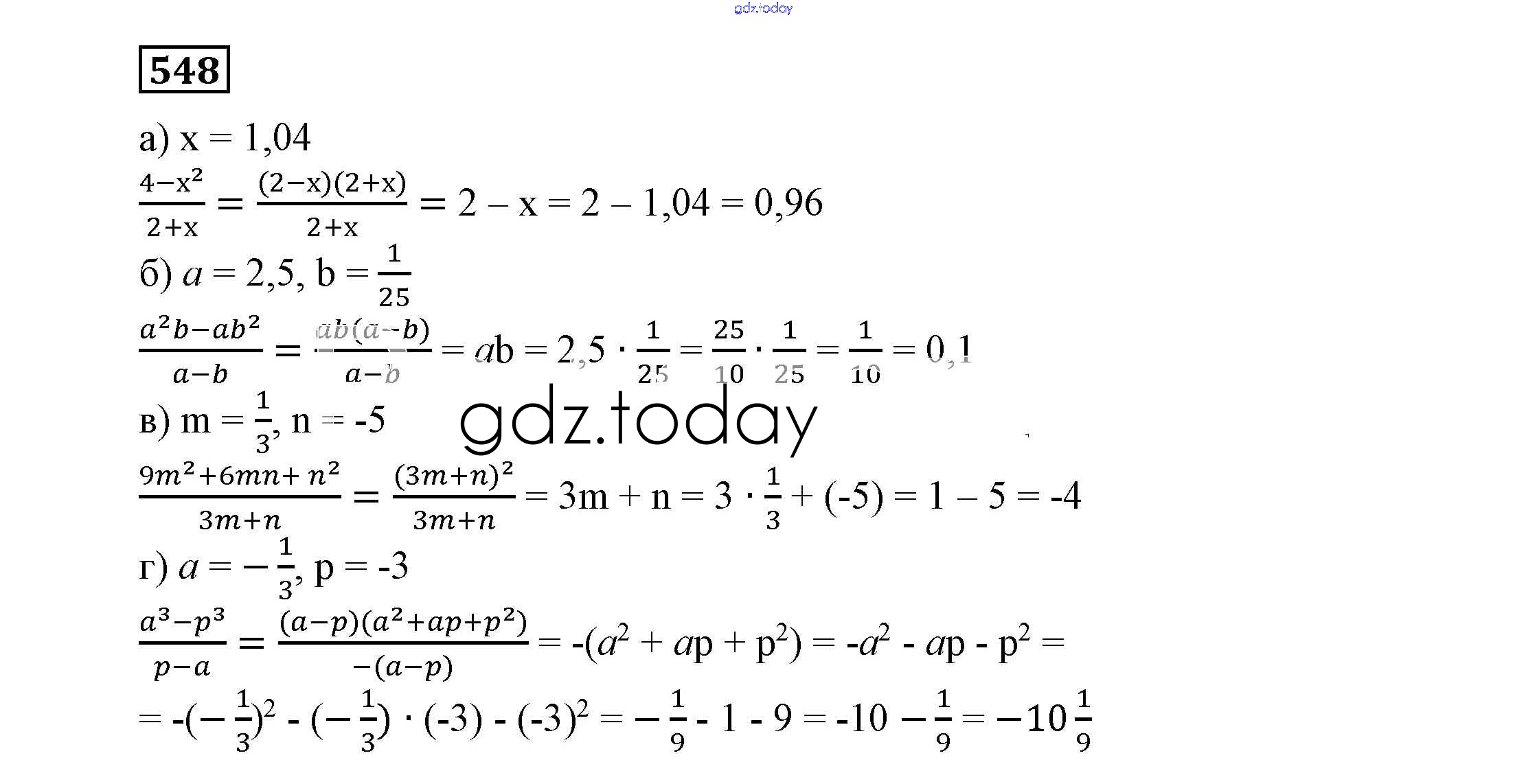 На страницах сайта gdz.today вы найдете учебный и вспомогательный материал, направленный на улучшения знаний школьной программы. ГДЗ - онлайн мир знаний Решение к eпражнениям 548 Учебнику по Алгебре для 7 класса Никольский, Потапов Просвещение МГУ - школе 2013