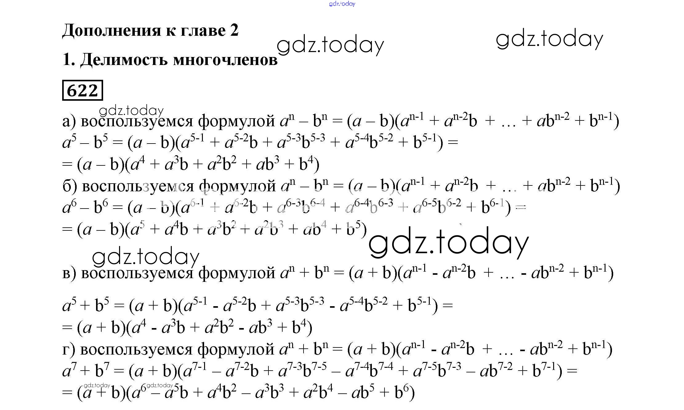 На страницах сайта gdz.today вы найдете учебный и вспомогательный материал, направленный на улучшения знаний школьной программы. ГДЗ - онлайн мир знаний Решение к eпражнениям 622 Учебнику по Алгебре для 7 класса Никольский, Потапов Просвещение МГУ - школе 2013