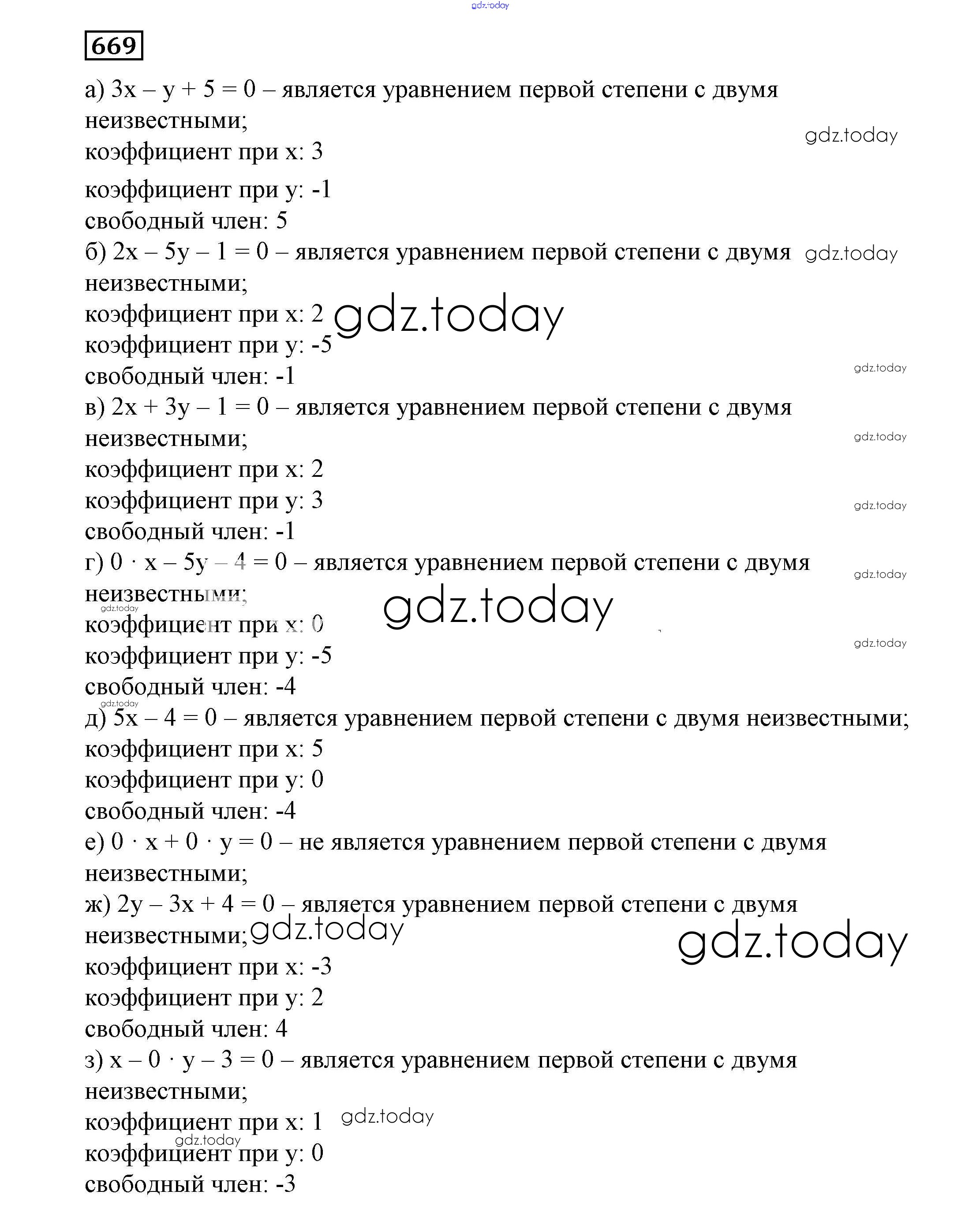 Ответы к Решение к eпражнениям 669 Учебнику по Алгебре для 7 класса Никольский, Потапов Просвещение МГУ - школе 2013
