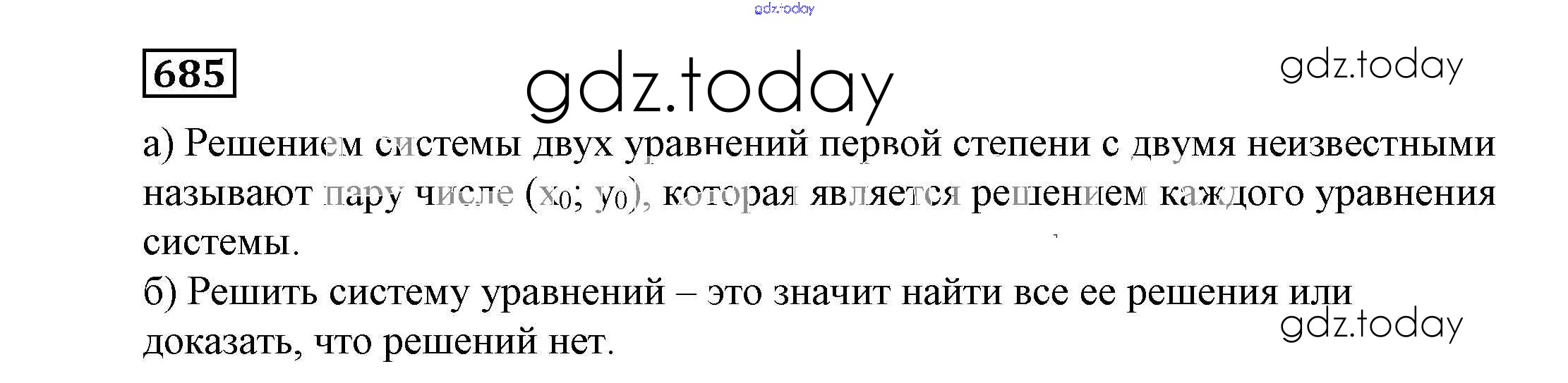 На страницах сайта gdz.today вы найдете учебный и вспомогательный материал, направленный на улучшения знаний школьной программы. ГДЗ - онлайн мир знаний Решение к eпражнениям 685 Учебнику по Алгебре для 7 класса Никольский, Потапов Просвещение МГУ - школе 2013