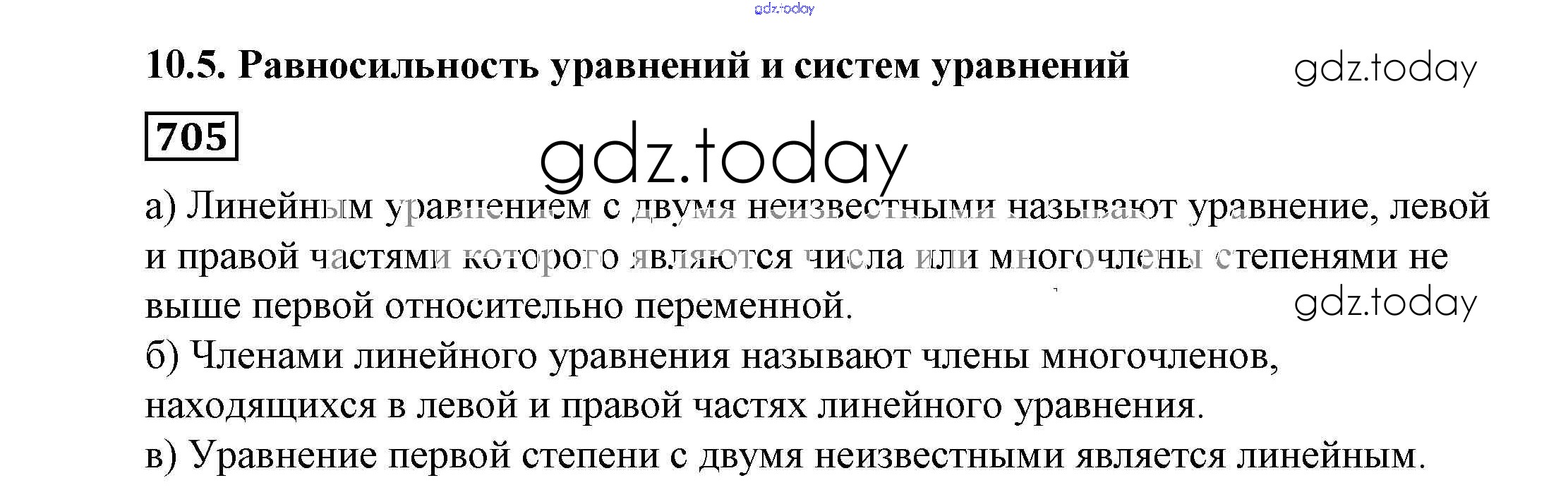 На страницах сайта gdz.today вы найдете учебный и вспомогательный материал, направленный на улучшения знаний школьной программы. ГДЗ - онлайн мир знаний Решение к eпражнениям 705 Учебнику по Алгебре для 7 класса Никольский, Потапов Просвещение МГУ - школе 2013